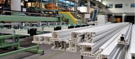 Общая длина 22 м, с промежуточным накопителем для 5 профилей, фрезерование в целом хлысте с последующей нарезкой в пильном модуле Optima VI с тремя пильными дисками, а также с дополнительной А-пилой для заострения импоста и выреза клина.