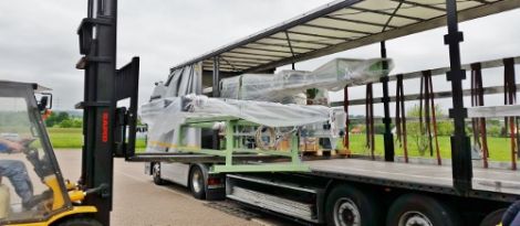 Погода сегодня всё-таки не подвела: началась погрузка пасмурным утром, а к моменту отправки третьей фуры уже вовсю светило солнце. В такой замечательный летний день стартовала наша высокоскоростная линия для производства ПВХ окон в долгий путь на Ирладию.