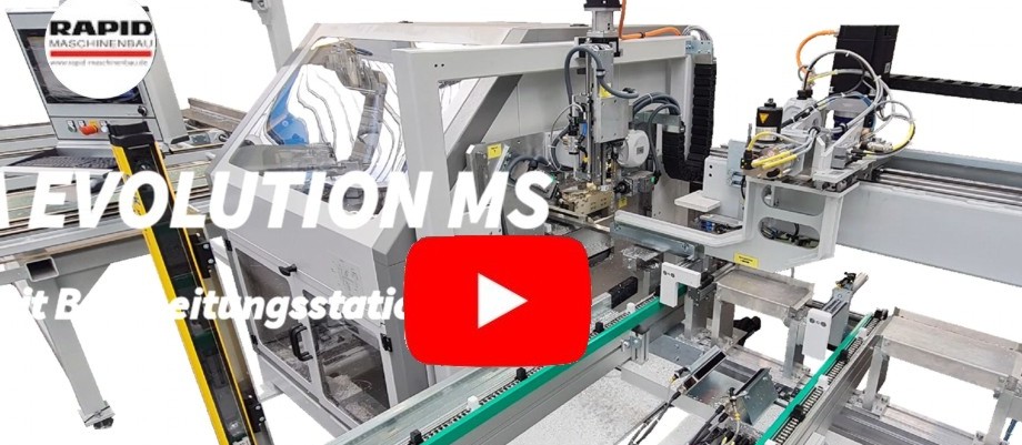 Nach dem Stahleinschub können die restlichen Bearbeitungen im Bearbeitungszentrum RAPID MFC Evolution gemacht werden. Der integrierte oder vorgelagerte automatische Schrauber verschraubt die Verstärkungsprofile mit dem Kunststoffprofil (Siehe hierzu ein separates Video auf unserem Kanal: https://www.youtube.com/watch?v=RRz8ms-1uhQ ).