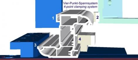 Die perfekte Unterstützung des Profils während des Sägevorgangs erfolgt durch das hochflexible 4Punkt-Spannsystem...